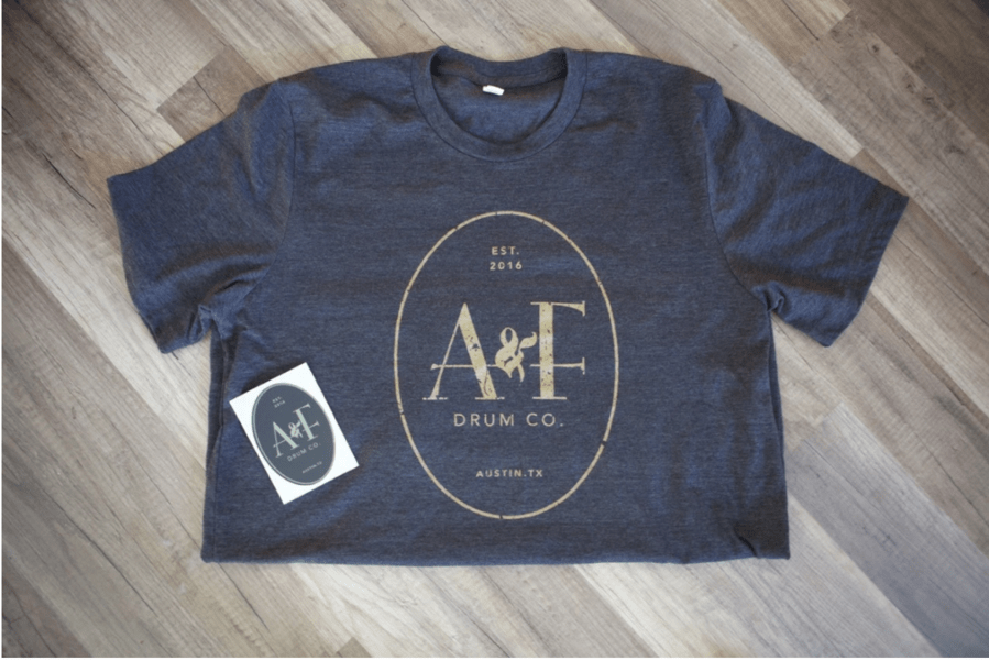 These exclusive A&F T-Shirts are a unisex pre-washed tri blend of cotton, polyester and rayon, and come in charcoal gray crew neck or white v-neck with brass colored print.