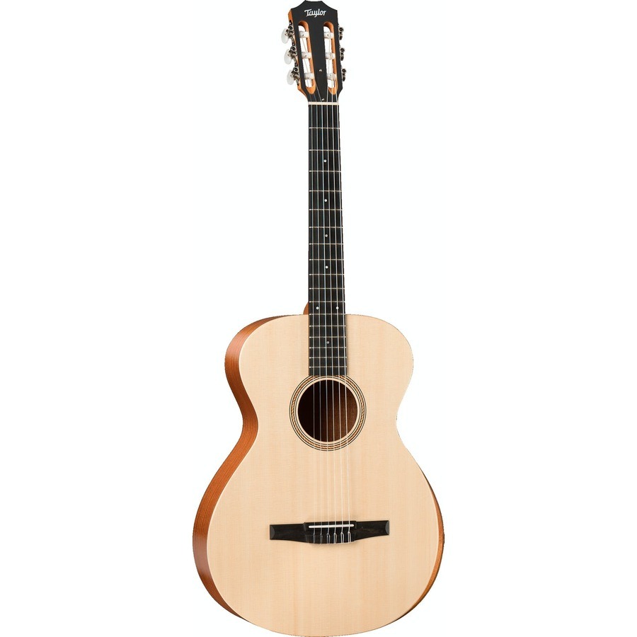 This nylon-string Grand Concert from our Academy Series may be the best nylon-string guitar you’ll find for the money. The underlying design goal of the series is to make the acoustic guitar accessible to more players by bringing Taylor’s legendary playability and tone into an affordable price range. One of the benefits of a nylon-string guitar is that the light string tension is easy on the fingertips. Another inviting feature is a built-in armrest to enhance the playing comfort. Tonally, the wood pairing of layered sapele back and sides with a solid Lutz spruce top, together with the body’s internal bracing, project a warm, mellow nylon voice with crisp percussive appeal that suits a variety of musical styles and responds well to both fingerpicking and flatpicking. Whether you’re a steel-string player looking to add an affordable nylon-string to your acoustic toolbox or crave a great-sounding acoustic guitar that’s easy on the hands and the wallet, the Academy 12-N is an option well worth exploring.