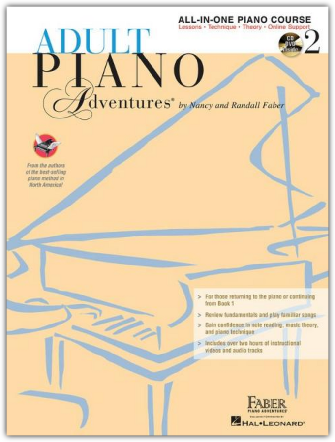 Book 2 offers carefully sequenced instruction in notereading, music theory and piano technique for the adult student. Students explore pieces arranged in the keys of D and F Major, as well as D and E Minor. Keyboard harmony is taught using “lead sheets” with chord accompaniment patterns. Contents include: Cathedral Chimes • 'O Sole Mio! • Sloop John B • Brahms' Lullaby • The Lion Sleeps Tonight • Hava Nagila • Give My Regards to Broadway • Scarborough Fair • Malaguena • Pachelbel's Canon • and more.
