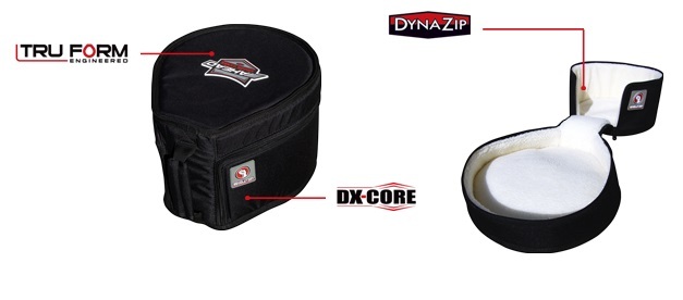 Secondly, the patented DynaZip' zipping system makes it easier to take the drums in and out of the cases by combining an ingenious cutaway design with a zipper that travels along the diameter of the case as well as down both sides of the cutout.
