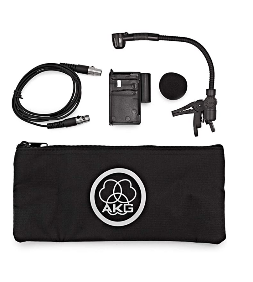 HORN SECTION LIBERATION for brass and woodwind instruments on stage and in studio The C519 professional miniature condenser microphone clips gently onto the bell of a trumpet, saxophone, trombone, tuba, didgeridoo or any other wind instrument. Its tight cardioid polar pattern makes the C519 an ideal tool for use near monitor wedges, and its flat frequency response delivers a natural, powerful and clear sound.