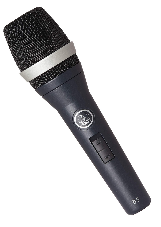 AKG D5S Dynamic Supercardioid Mic W/Switch | Mooloolaba Music Australia Patented laminated Varimotion diagragm High feedback suppression with supercardoid polar pattern Dual shock mount of microphone capsule On/off Switch Audio frequency bandwidth 70 to 20000 Hz * Sensitivity 2.6 mV/Pa * Electrical impedance 600 Ohms * Recommended load * impedance 2000 Ohms * Polar Pattern supercardioid * With mute Switch * Windscreen W23 - 6000H06210 *