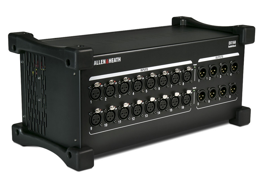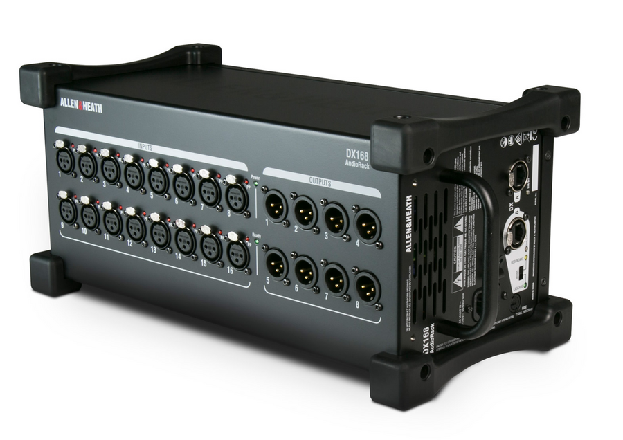 Each DX168 features 16 mic preamps with independent Phantom Power LED indicators, plus 8 XLR line outs.