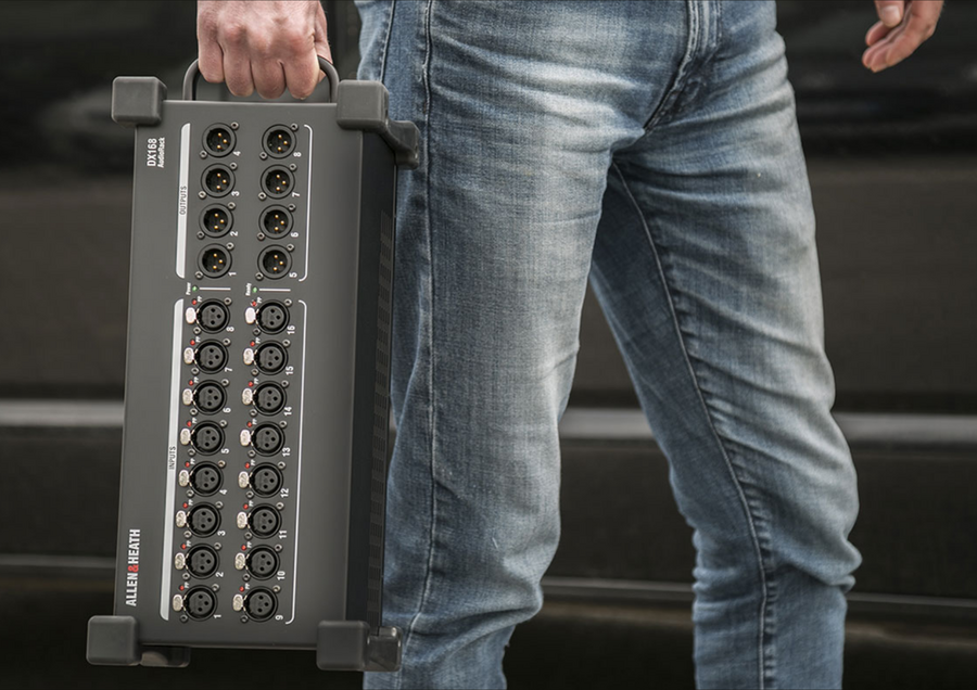 The DX168 is a rugged, 96kHz portable expander for adding remote I/O to a dLive, Avantis or SQ system, or to the AHM-64 audio matrix processor.