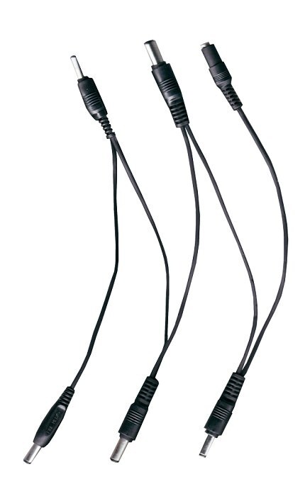 DC power cable for multiple effect pedals power supply. 2.1mm (M) to 5 x 2.1mm (F) DC connectors. Powers up to 5 pedals. 1.5m long.