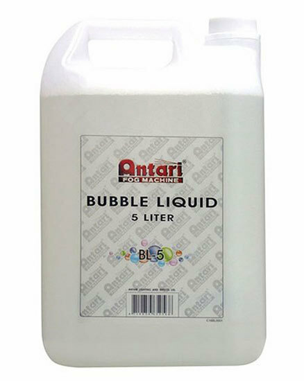 Designed for use in the Bubble Machines. Antari Bubble Liquid is a water-based composition that creates vivid, transparent bubbles. The liquid is colourless, odourless and non-flammable. Five litre container.