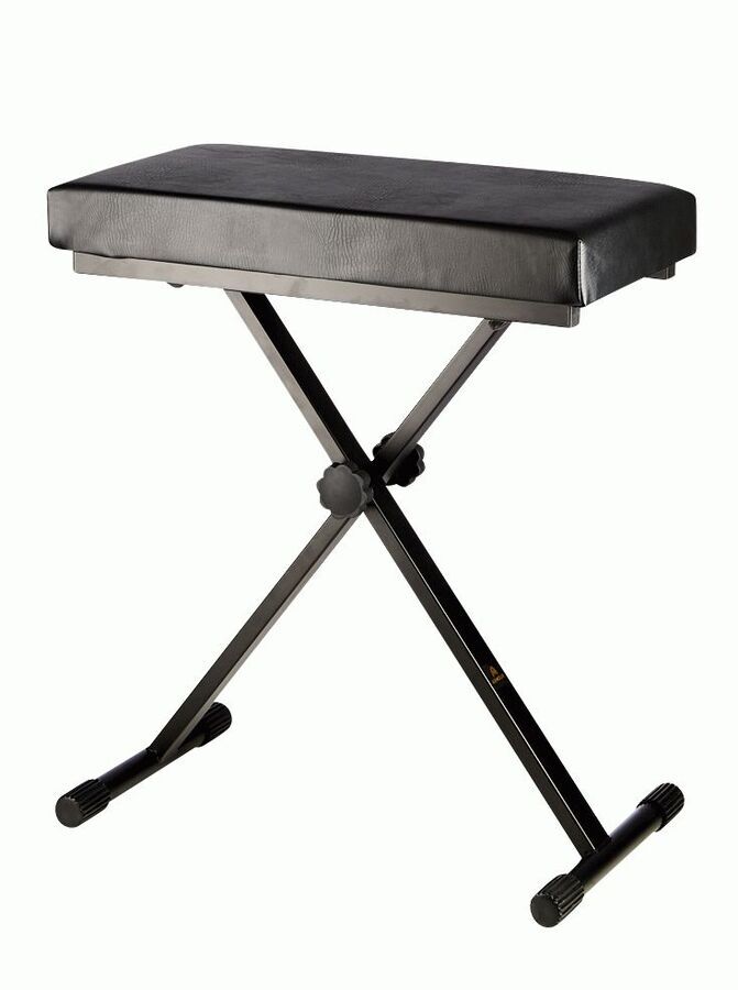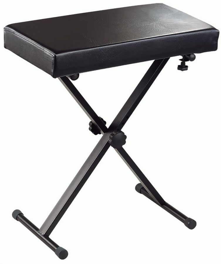 Premium X-frame keyboard bench with padding in black.