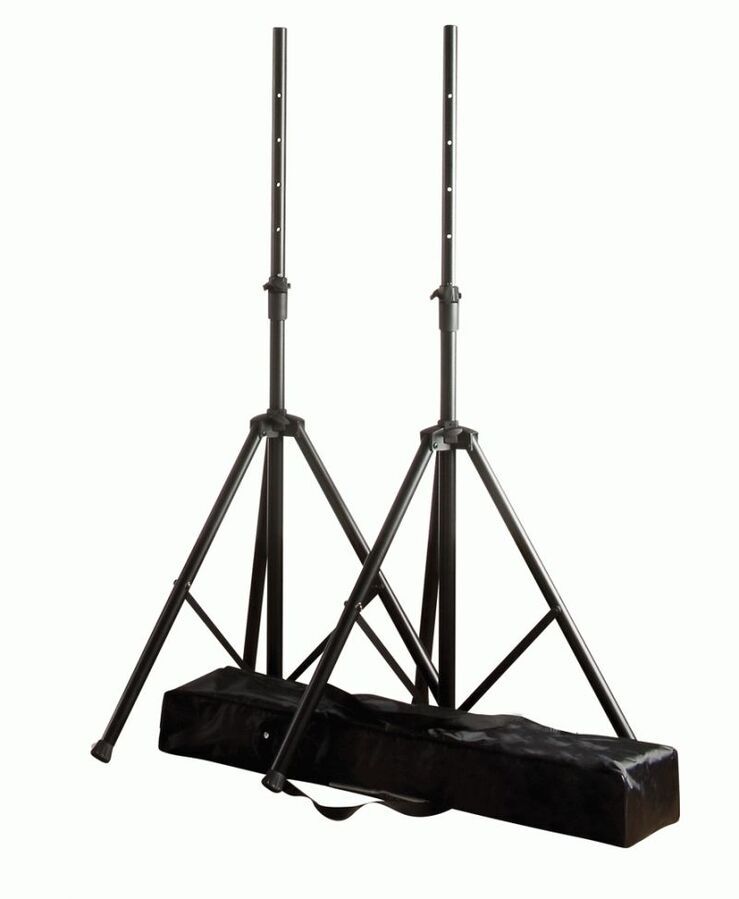 Includes 2 x speaker stands and a tough nylon carry bag. Capable of holding a whopping 45 kg each thanks to their large diameter tubing, solid steel construction and locking pin joints, the stands are fully adjustable between 108-195cm so you can set up just the way you want.