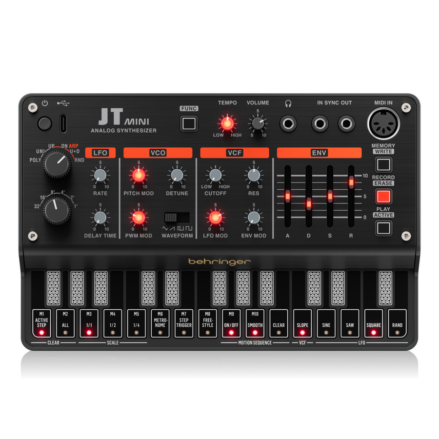 Whether you’re looking for a synth that’ll be right there with you when inspiration hits, or one to round out your gear, the Behringer JT MINI is perfect for any synth head looking for that special sauce.