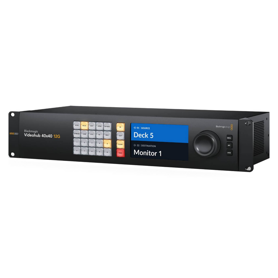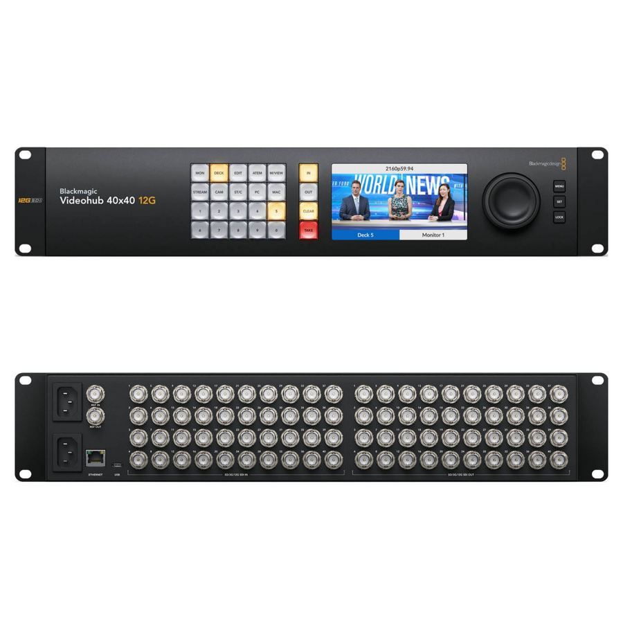 The new Blackmagic Videohub 12G-SDI video routers let you connect all your equipment without creating a complex cable mess! Blackmagic Videohub routers support 12G-SDI so they allow you to connect and route any combination of SD, HD and Ultra HD on the same router at the same time. Plus they have zero latency so are perfect for live production and broadcast! The design features an elegant front panel with LCD for labels and even live video, shortcut buttons and a machined metal spin knob with soft rubber coating that lets you browse video sources. Ethernet is also included so you can remotely control the router using a range of external hardware or software control panels.