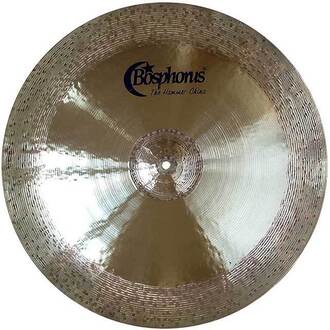The Bosphorus Antique Series China, a clean, crisp cymbal. The top side features an un-lathed bell and an additional un-lathed strip between the bell and the edge. The bottom side of the cymbal is completely lathed in the traditional manner.