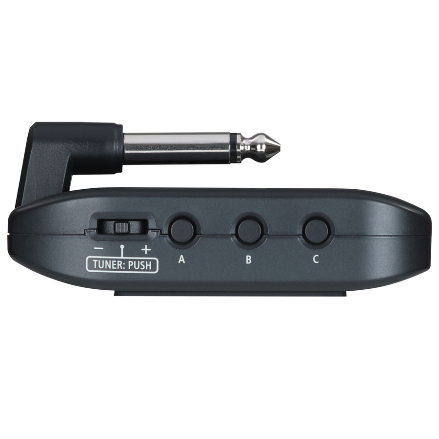 KATANA:GO delivers premium sound for everyday playing without the hassle of amps, pedals, and computer interfaces. Simply plug it in, connect earbuds or headphones, call up a memory, and start rocking. Onboard controls provide access to volume, memory selection, and other essential functions, and you can easily view the current memory and tuner with the built-in display. The rechargeable battery provides up to five hours of continuous playing time, and the integrated 1/4-inch plug folds down to create a pocket-size package that’s ready to travel anywhere.