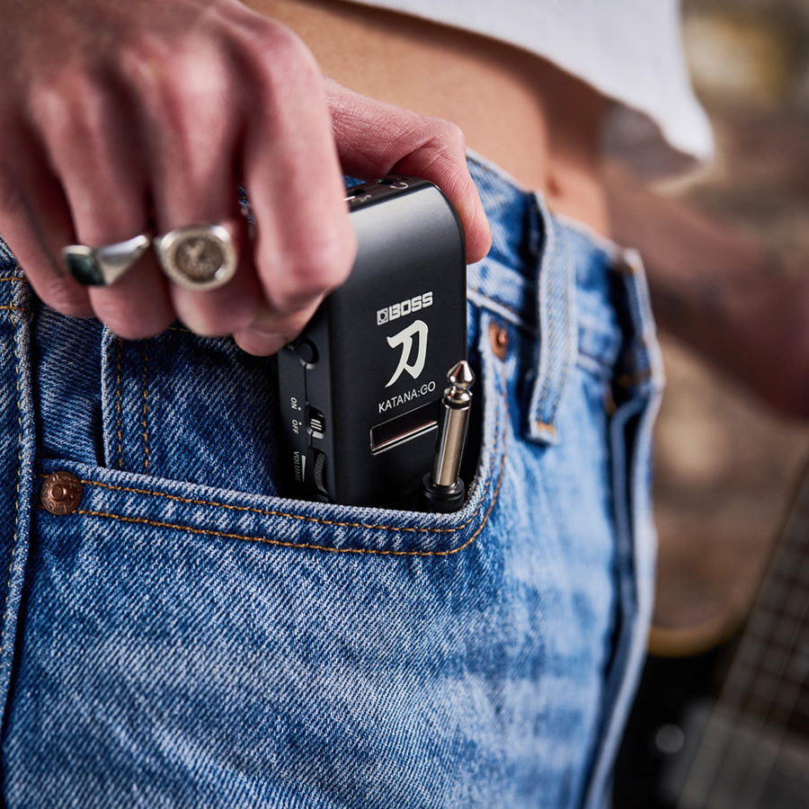 Compact, convenient, and loaded with tone, KATANA:GO is an essential companion for daily jams with your guitar or bass. This powerhouse headphone amp puts authentic sounds from the stage-class Katana amp series at your instrument’s output jack, paired with a host of wireless music streaming, sound editing, and learning tools on your smartphone. Advanced spatial technology provides a rich 3D playing experience, while BOSS Tone Exchange offers an infinite sound library to explore any style. Whether you’re a developing hobbyist or a pro keeping up your chops, KATANA:GO keeps you inspired everywhere you play.