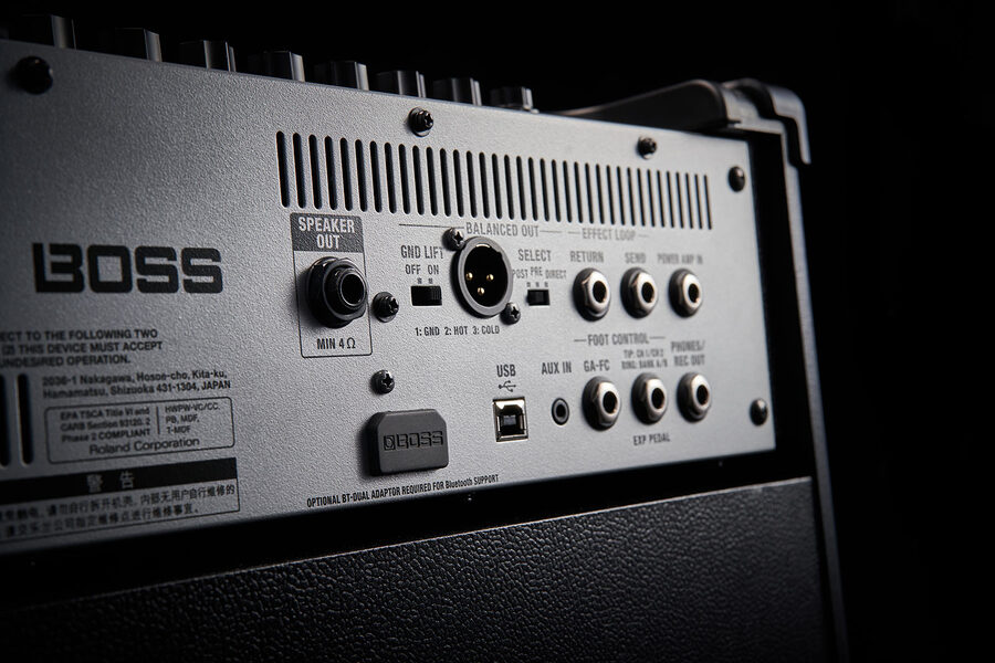 To shape sounds with even finer control, reach deep into the heart of the Katana-210 Bass with the BOSS Tone Studio editor. Adjust preamp, EQ, and Blend settings, call up and tweak over 60 BOSS effects, and organize sounds in Live Sets for different gigs. You can also shape the overall amp response with powerful global EQs and fine-tune system settings like Air Feel, USB, and more. And by connecting an optional BOSS Bluetooth® Audio MIDI Dual Adaptor to the rear panel, you can wirelessly adjust settings on the gig from your iOS or Android mobile device.