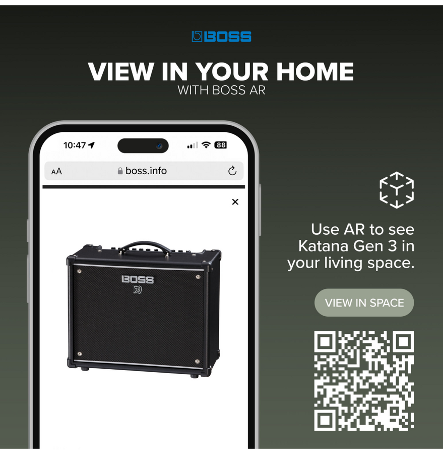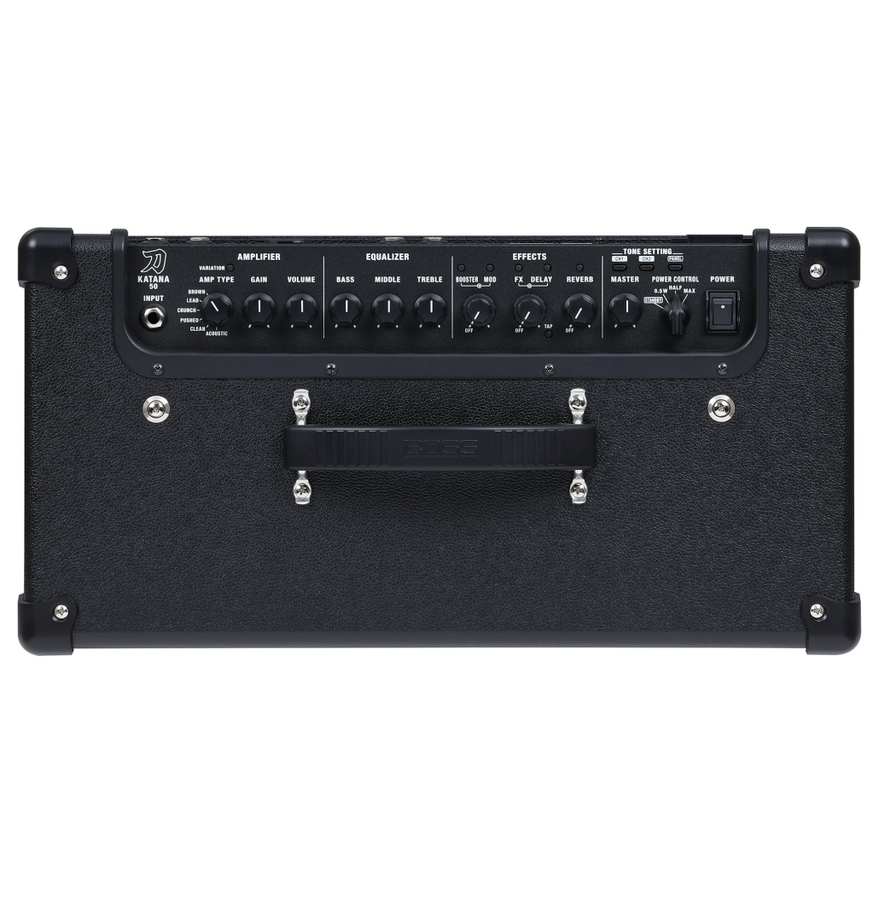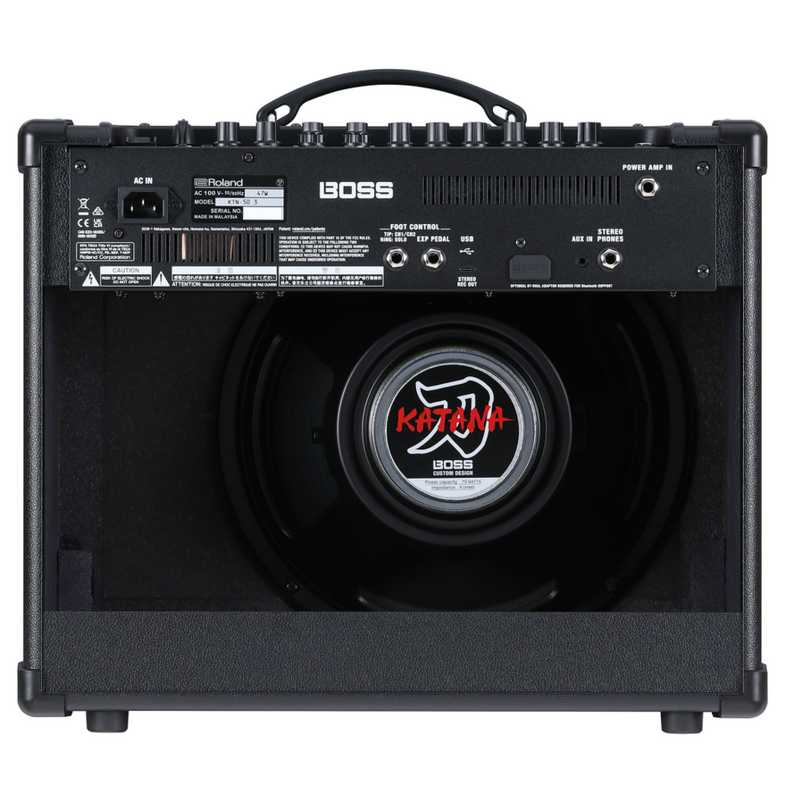 Main Features • Third-generation Katana amplifier with evolved Tube Logic sound and expressiveness • Stage-ready 50-watt combo amp with a custom 12-inch speaker • Six amp characters—including the newly developed Pushed type—plus a selectable variation for each • Five independent effects sections: Booster, Mod, FX, Delay, and Reverb • Four Tone Setting memories for storing all amp and effect settings • Power Control for achieving cranked-amp tone and response at low volumes • Updated Boss Tone Studio app (Windows/macOS) for remote editing from a computer or mobile device • Download and share Katana sounds on BOSS Tone Exchange • Compatible with sounds created on previous stage-class Katana models