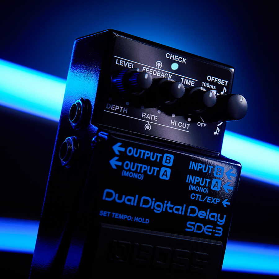 The SDE-3 fuses vintage digital character and wide-ranging versatility into one unique and inspiring BOSS compact pedal. Experience the genuine sound and core features of the Roland SDE-3000, an iconic ’80s-era rackmount delay favored by some of the most influential guitarists of all time. Flow into any creative setup with a slate of modern features. And twist the powerful Offset control to explore an array of colorful dual-delay textures.