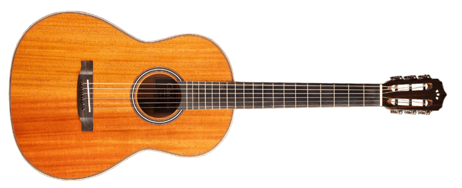 The result is easily one of the most unique and nuanced sounding instruments I’ve ever picked up. For all intents and purposes this is a classical guitar; the fanned bracing inside the mahogany resonating chamber produces a warm, elegant and romantic sonic texture. The body itself is feather light with pinpoint balance across the length evidencing none of the ropey tension normally associated with steel string designs. The velvety darkness of the ebony fretboard accentuates the body’s poetic mood and the simplicity of the rosette and inlays in the fretboard and headstock finish off Leona’s visage with timelessness and grace.