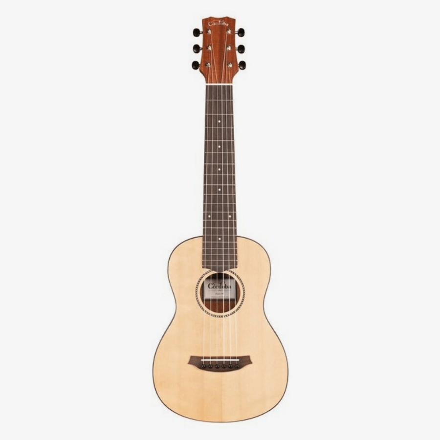 The Mini M is the ultimate travel instrument, offering the playability of a full size guitar in a compact, lightweight body with an impressively loud voice. This miniature guitar features a solid spruce top paired with mahogany back and sides for a clear, complex tone. Its comfortable, thin U-shaped neck and 2" (50mm) nut width offers the feel and string spacing of a full-size guitar. The Mini M is a perfect companion for road trips, vacations, and hanging out at home. Includes a Córdoba gig bag.