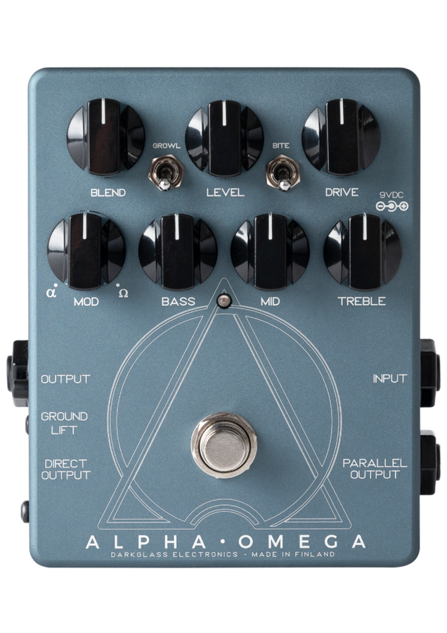 This creation differs significantly from our previous preamplifiers and overdrives: it is fully operational amplifier based and has two distinct distortion circuits (Alpha and Omega) which can be selected or blended using our Mod knob. This unusual control, in conjunction with the toggle switches and 3 active band equalizer makes Alpha · Omega the most flexible among our designs.