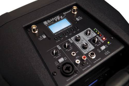 B-Hype M mixes the professional acoustic performance of the BH family with the most advanced versatility of a complete portable PA. Equipped with a wireless microphone system, audio media player with Bluetooth connection, SD card and USB port, a long lasting battery, wheels and a retractable top handle. 10" woofer and 1" compression driver, 123dB maximum SPL and 62Hz - 20kHz frequency response. 3 inputs plus Bluetooth, 12.5kg (without TX). 300x568x301mm (WxHxD). This package comes with a handheld transmitter.