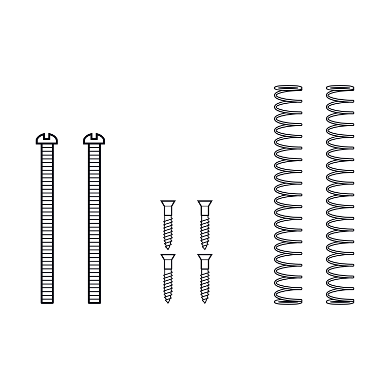 Neck position. Includes 2 slotted and 2 Phillips height adjustment screws, 2 height springs & 4 mounting ring screws.