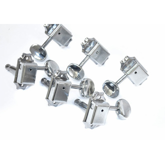 Set of 6 single chrome plated, diecast housing, single tulip style cast buttons. 3-a-side. 15 to 1 gear ratio.