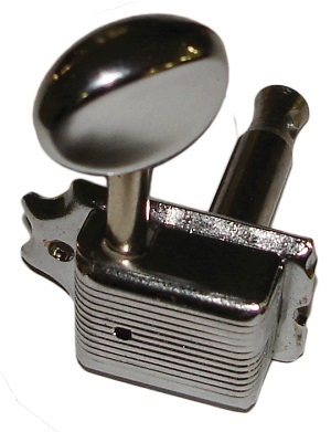 Vintage Kluson style. Chrome with round vintage buttons. Set of 6 singles. 6-in-line. Press-fit bushings.