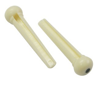 Plastic bridge pin set. Ivory with black dot. 6 pieces.