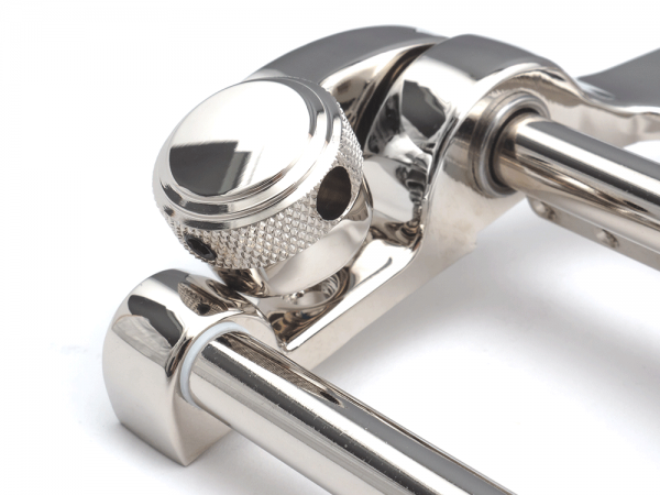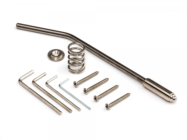 The Tremola Short Nickel Tremolo system gives you best tone while being lightweight. Heavy duty needle and nylon bearings will give you the famous buttery and highly responsive Duesenberg feel when using the tremolo arm. The arm can be turned freely for 360°, allows you to set your preferred angle and can be removed within seconds just in case you don't need it sometimes. The strings are simply guided through the holes in the bar underneath the arm-axis and can be lead to the tuners without any hassle.