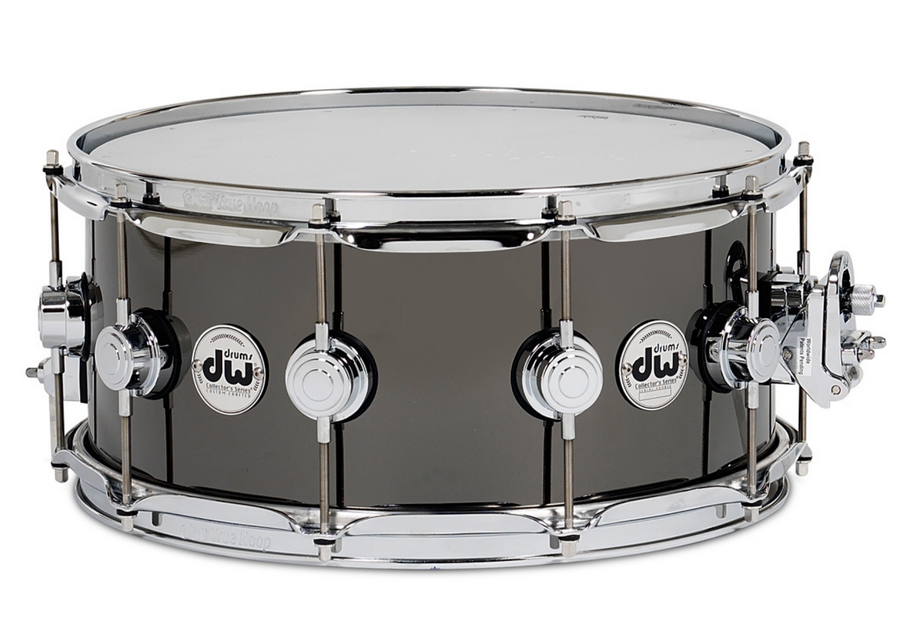 Utilizing a thin industry-standard 1mm shell, and plated with sleek black nickel, the Collector's Series Black Nickel over Brass is a versatile workhorse snare. Suitable for a variety of musical applications, it offers that sought-after "classic studio brass snare sound" for Rock, Jazz, and beyond; offering brightness and cut with a decidedly metallic tonal characteristic. Customize it with any available DW Custom Shop drum hardware colour. Availability: 5.5x14", 6.5x14", 7x13", 8x14"