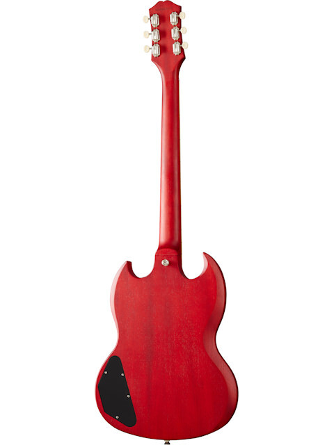 The Epiphone SG Classic Worn from the new Inspired by Gibson Collection offers fans the legendary SG solid body electric in a "worn" open grain finish. Powered Epiphone P-90-PROâ„¢ soap bar single coil pickups.