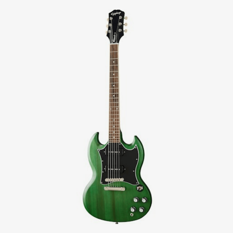 The Epiphone SG Classic Worn from the new Inspired by Gibson Collection offers fans the legendary SG solid body electric in a "worn" open grain finish. Powered Epiphone P-90-PROâ„¢ soap bar single coil pickups.