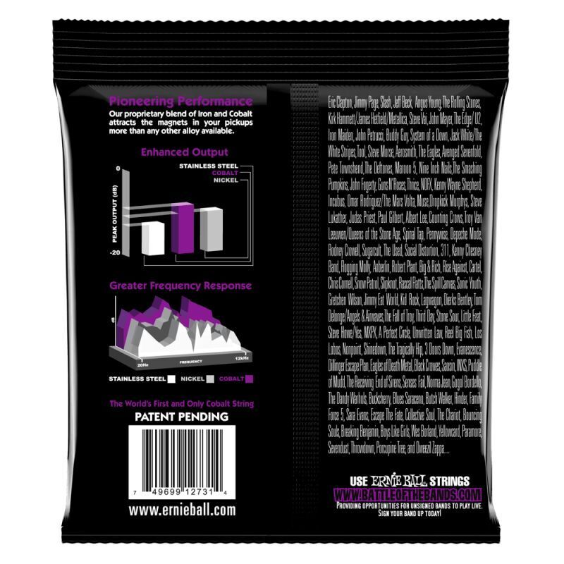 Ernie Ball 2731 Power Slinky Cobalt Electric Bass Strings 55-110 Gauge Engineered to maximize output and clarity, Ernie Ball Cobalt Slinky bass strings are the latest innovation in string technology. Seeking to provide bassists with a new voice, Cobalt strings provide an extended dynamic range, incredible harmonic response, increased low end, and crisp, clear highs. Cobalt provides a stronger magnetic relationship between pickups and strings than any other alloy previously available. Cobalt Slinkys are also soft and silky to the touch, making string bending a breeze. Gauges .055,0.075,0.09,0.11