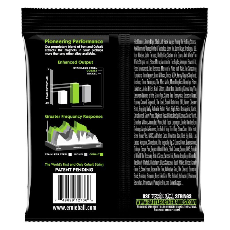 Ernie Ball 2736 Bass 5 Slinky Cobalt Electric Bass Strings 45-130 Gauge Engineered to maximize output and clarity, Ernie Ball Cobalt Slinky bass strings are the latest innovation in string technology. Seeking to provide bassists with a new voice, Cobalt strings provide an extended dynamic range, incredible harmonic response, increased low end, and crisp, clear highs. Cobalt provides a stronger magnetic relationship between pickups and strings than any other alloy previously available. Cobalt Slinkys are also soft and silky to the touch, making string bending a breeze. Gauges .045,0.065,0.08,0.1,0.13