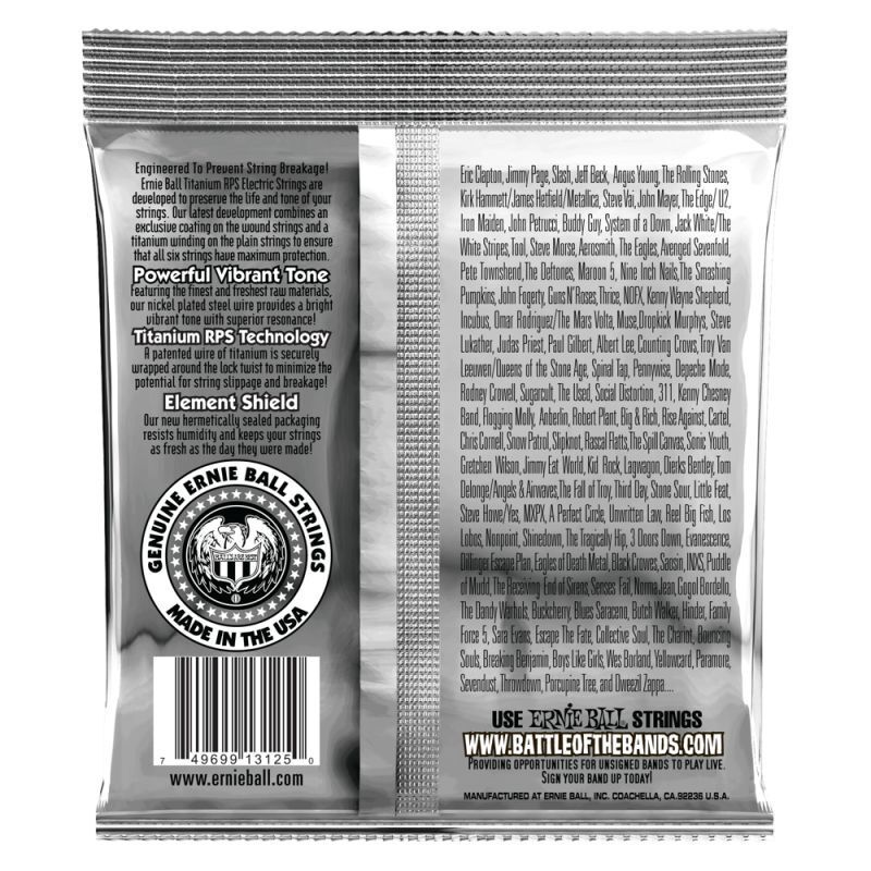 Ernie Ball 3125 Extra Slinky RPS Coated Titanium Electric Guitar Strings 8-38 Gauge Ernie Ball coated Slinky strings combine the latest technological advancements in string manufacturing. All wound strings are treated with groundbreaking nanotechnology that repels unwanted moisture and oils that negatively impact your tone. In addition to treating the wound strings, each plain string features a patented reinforcement winding of titanium wire. Titanium's inherent strength prevents string breakage, string slippage, and is proven to keep your guitar strings in tune better than conventional plain strings. Ernie Ball Coated Slinky guitar strings maintain the feel and sound of uncoated sets, combining the added protection with the vibrant tone Ernie Ball customers have relied on for over 50 years. Gauges .008,0.011,0.014, .022w,0.03,0.038