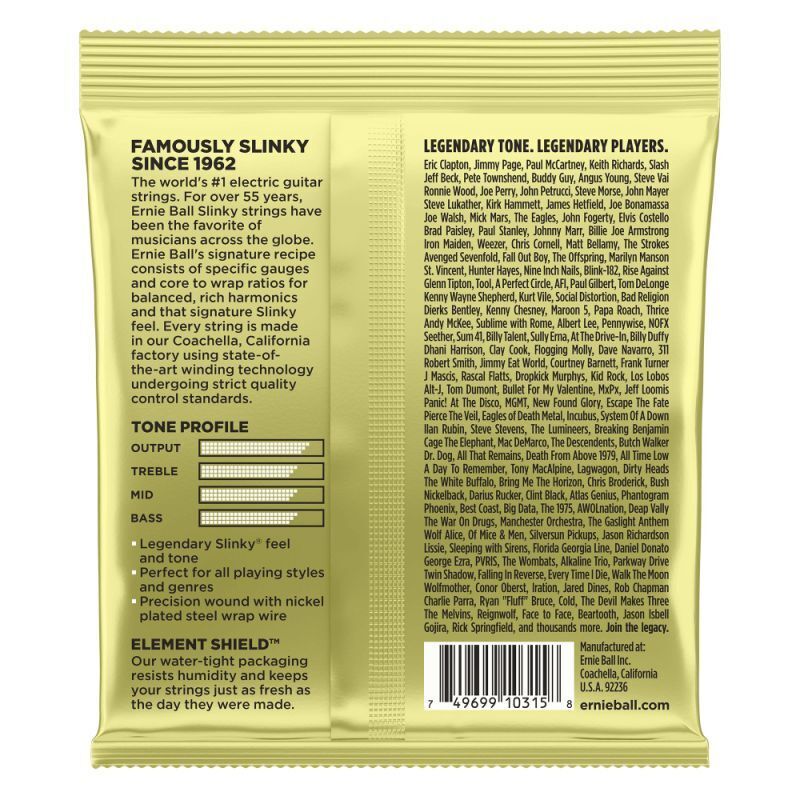 Ernie Ball Nickel Wound Electric Guitar Strings are made from nickel plated steel wire wrapped around tin plated hex shaped steel core wire. The plain strings are made of specially tempered tin plated high carbon steel producing a well balanced tone for your guitar. Gauges .012, .016, .0124w, .034, .048, .062