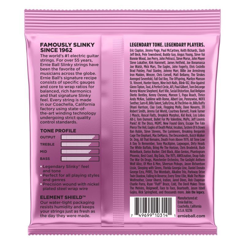 Ernie Ball Nickel Wound Electric Guitar Strings are made from nickel plated steel wire wrapped around tin plated hex shaped steel core wire. The plain strings are made of specially tempered tin plated high carbon steel producing a well balanced tone for your guitar. Gauges .0105, .0135, .0175, .028, .038, .048