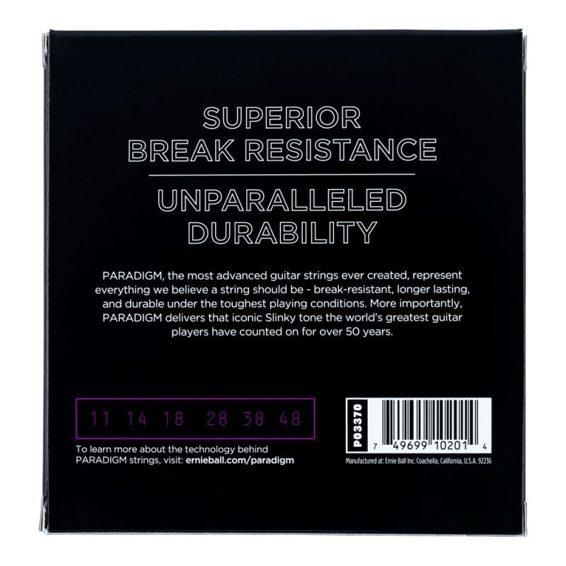 Ernie Ball Paradigm electric and acoustic guitar strings feature the world's most advanced string technology. Paradigm strings demonstrate superior break-resistance and unparalleled durability while delivering the iconic Slinky tone Ernie Ball is known for. Select gauges of Paradigm acoustic and electric sets are now available to order in a buy-two-get-one-free bonus pack, giving players the chance to experience even more for a great price. Available in 11-48 gauges.
