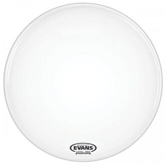 Evans MX1 white marching bass drum heads produces a bright, focused, and full tone with a single ply of 10mil film. The MX series includes a unique tone damping system that can be manipulated by applying individual felt arcs (included) to enhance articulation and focus low-end for both indoor and outdoor marching.