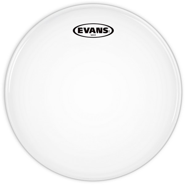 Evans white Hybrid Series utilizes two unique high-tensile fibers, one chosen for flexibility and the other for durability. Compared to aramid fiber heads, the Hybrid marching snare batter achieves a much softer feel, greater sensitivity, and a broader dynamic range while enhancing projection and durability.