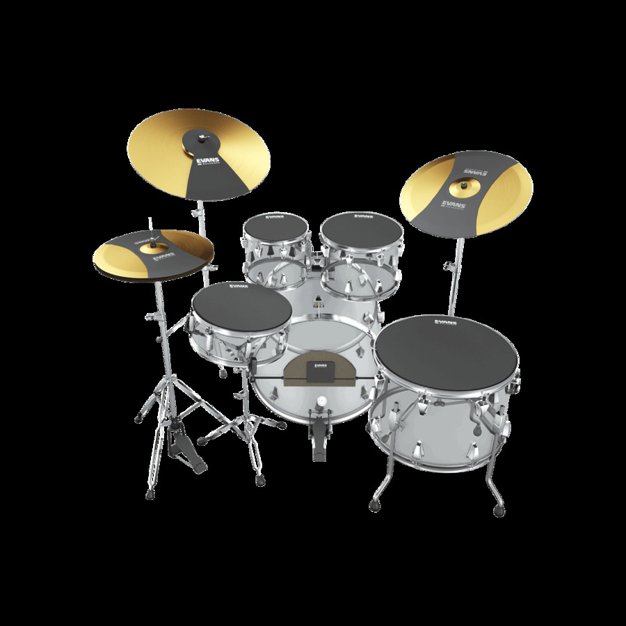 The Evans SoundOff Fusion Pack significantly reduces volume while you practice on your traditional drum set. SoundOff Mutes provide excellent stick response and are durable enough for the heaviest hitters. SoundOff Mutes are available for purchase in pre-configured packs or as individual mutes.