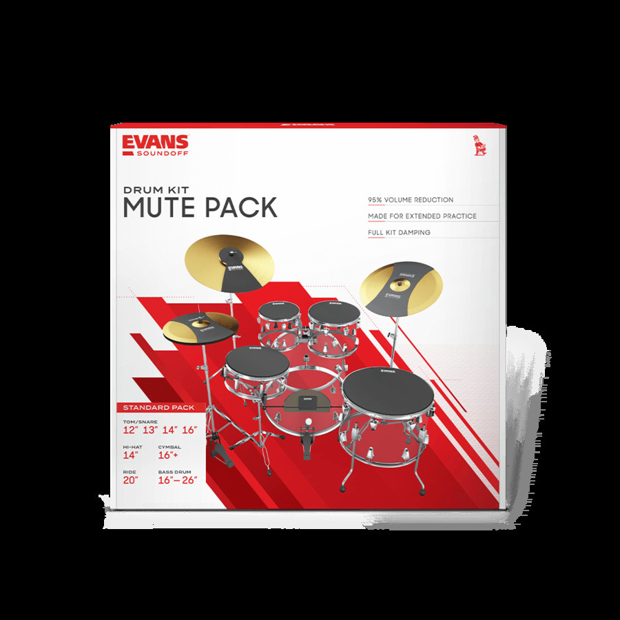 Drum mutes for standard-sized kits; 12,13,16, 14(snare) plus bass and cymbal mutes Adjustable bass mute fits 18" to 26" bass drums A great gift for any drummer; practice at home without having to worry about volume control All SoundOff by Evans drum mutes are designed, engineered, and manufactured to the most stringent quality control standards in the industry