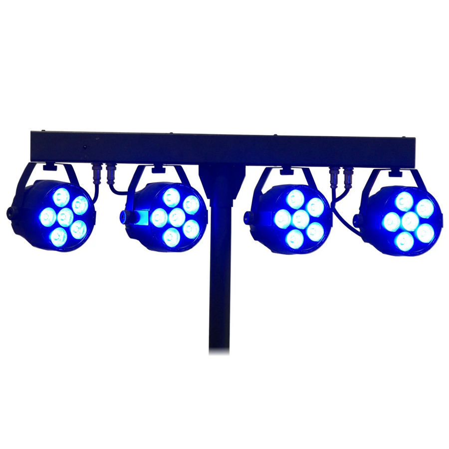 Using four compact LED wash lights on a lighting stand, the VIVIDBAR2 provides an instant light show through a total of 24 x 4W 4-in-1 LED RGBWs. The included wireless remote allows the user to select single colours or built-in programs while sound activation means the effects will change to the music.