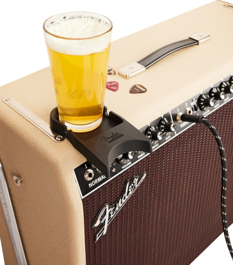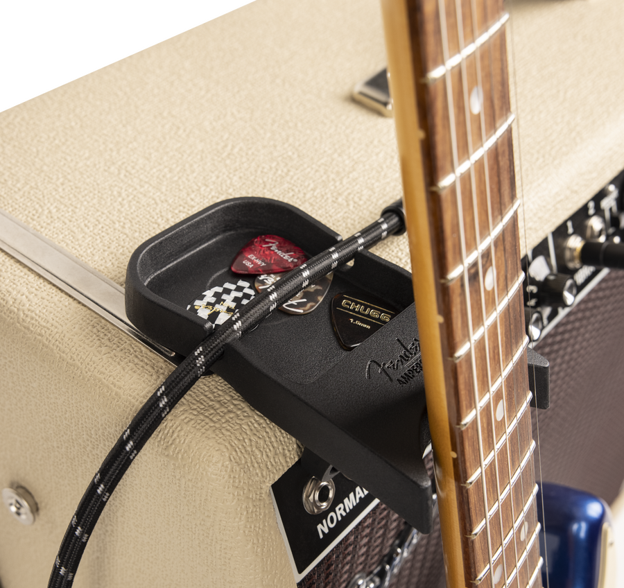 The Amperstand Guitar Cradle transforms any amplifier or tabletop into the perfect place to set your guitar down without fear that it will fall. The bottom of the Amperstand Cradle is covered in a micro-suction material that will safely grip just about any surface, including amplifier tolex, creating a secure seal that will hold the cradle in place to give you peace of mind. The Amperstand Cradle also provides a classic Fender "ashtray" to conveniently hold small items like picks and a capo - or your favorite beverage. The two grooves on the sides will hold your guitar cable in place.