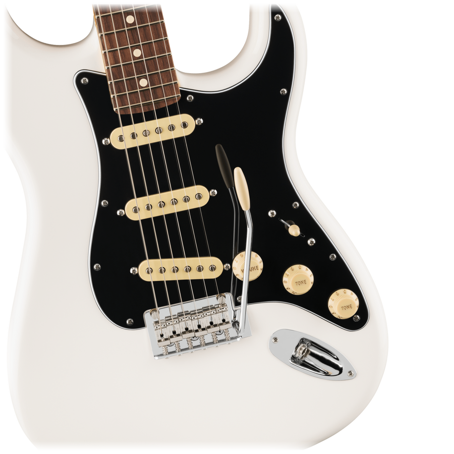 Bridge Pickup: Player Series Alnico 5 Strat® Single-Coil Middle Pickup: Player Series Alnico 5 Strat® Single-Coil Neck Pickup: Player Series Alnico 5 Strat® Single-Coil Pickup Configuration: SSS Controls: Master Volume, Tone 1. (Neck/Middle Pickups), Tone 2. (Bridge Pickup) Switching: 5-Position Blade: Position 1. Bridge Pickup, Position 2. Bridge and Middle Pickup, Position 3. Middle Pickup, Position 4. Middle and Neck Pickup, Position 5. Neck Pickup