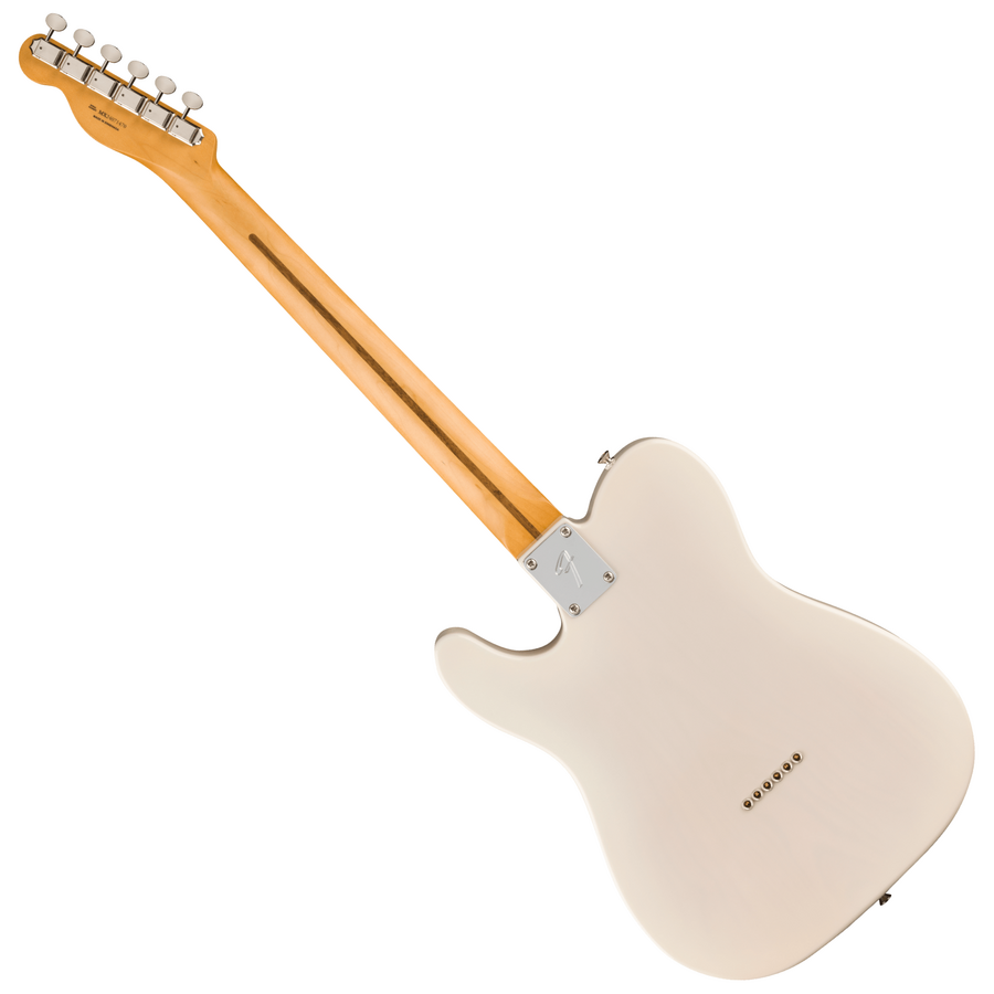 Hardware Bridge 6-Saddle String-Through-Body Tele® with Block Steel Saddles Bridge Mounting 4-Screw Vintage-Style Pickguard 3-Ply Black/White/Black Pickup Covers Neck: Chrome; Bridge: Black Control Knobs Knurled Flat-Top Switch Tip Barrel Style, Black Hardware Finish Nickel/Chrome Tuning Machines Fender® ClassicGear™ String Trees Dual-Wing Strings Fender® USA 250L Nickel Plated Steel (.009-.042 Gauges), PN 0730250403 Neck Plate 4-Bolt with "F" Logo Strap Buttons Standard