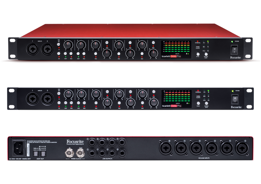 Scarlett OctoPre features eight Scarlett mic inputs – balanced line inputs too – all running through Focusrite precision 24-bit conversion at up to 192kHz resolution with 109dB dynamic range.