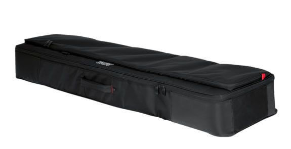 The Gator Cases Pro-Go 76-Note Slim Keyboard Gig Bag (G-PG-76SLIM) provides unrelenting security for your keyboard without compromising comfort and portability. A ballistic nylon exterior, ultra-thick padded sidewalls, and micro-fleece interior lining offer protection inside and out. Outer storage compartments help organize your cables, foot pedal, tablet, and favorite keyboard accessories. The G-PG-76SLIM is outfitted with reinforced handles, fully adjustable and fully removable backpack straps, as well as a wrap-around rain cover. Keep your 76-note slim keyboard safe with the Gator Pro-Go Keyboard Gig Bag.