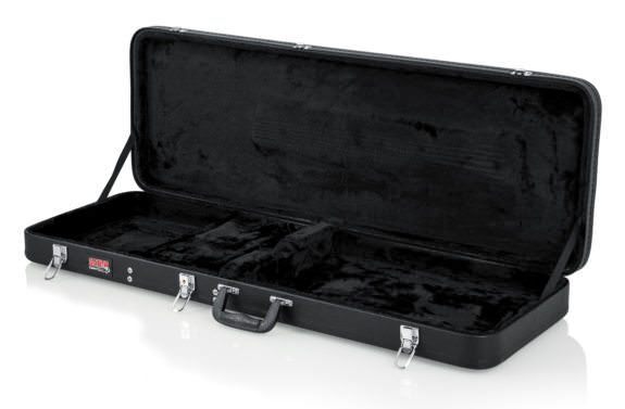 The GWE-ELEC Hard-Shell Wood Case for Electric Guitars is lightweight, ultra-slim, and designed to protect against the minor bumps and bruises of daily use. Ultra-durable plywood coated in black Tolex PVC forms a moisture-resistant, impact-resistant outer barrier while plush fabric lining keeps your electric guitar safe from harm. The large interior storage compartment fits everything from straps and tuners to picks and capos. Chrome plated lockable latches form a secure enclosure and the ergonomic carrying handle perfectly balances the case’s weight and gives you a comfy grip on your gear. Keep your electric guitar safe and sound with the Gator GWE-ELEC hard-shell wood case.