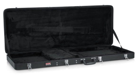 The GWE-EXTREME Hard-Shell Wood Case for Radically Shaped Guitars is lightweight, ultra-slim, and designed to protect against the minor bumps and bruises of daily use. Ultra-durable plywood coated in black Tolex PVC forms a moisture-resistant, impact-resistant outer barrier while plush fabric lining keeps your wide body guitar’s finish sleek and shiny. The large interior storage compartment fits everything from straps and tuners to picks and capos. Chrome plated lockable latches form a secure enclosure and the ergonomic carrying handle perfectly balances the case’s weight and gives you a comfy grip on your gear. Keep your Radical Shaped Guitars such as Gibson Flying V®, Explorer® or Dean ML® safe and sound with the Gator GWE-EXTREME hard-shell wood case.